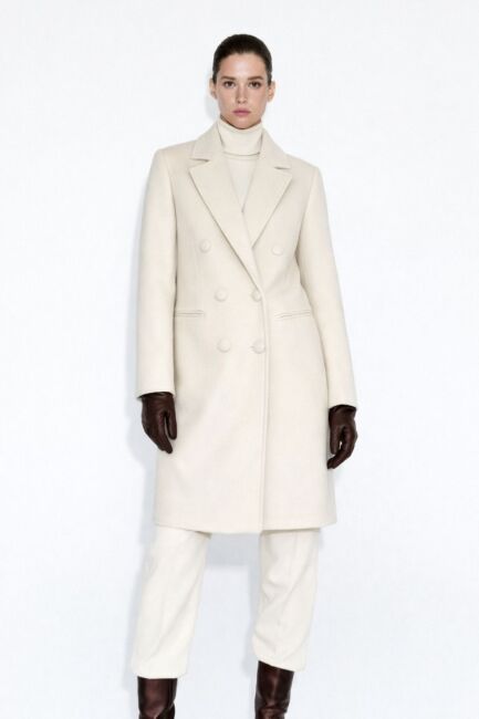 Mizalle Torba Cepli Basıc Kaşe Dokulu Bej Rengi Kaban