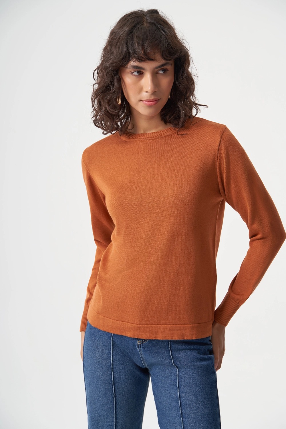 Mizalle Yuvarlak Yaka Basic Taba Rengi Triko Kazak
