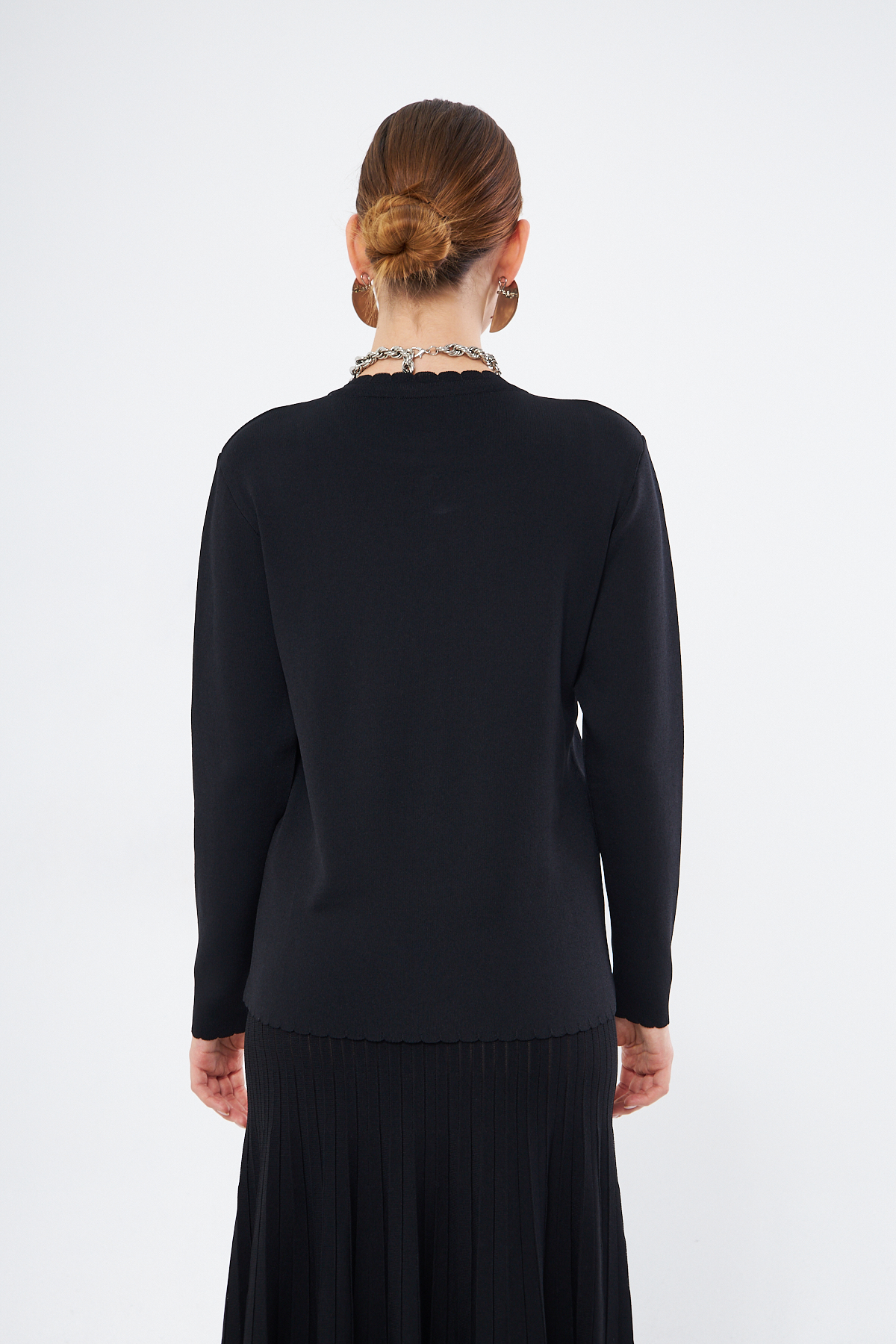 Mizalle Dilim Yakalı Rayon Siyah Hırka