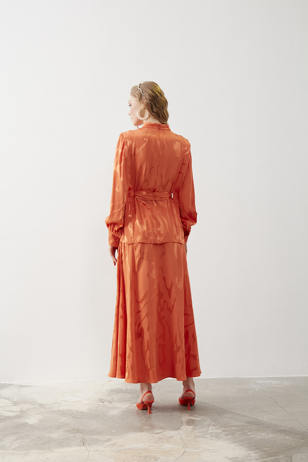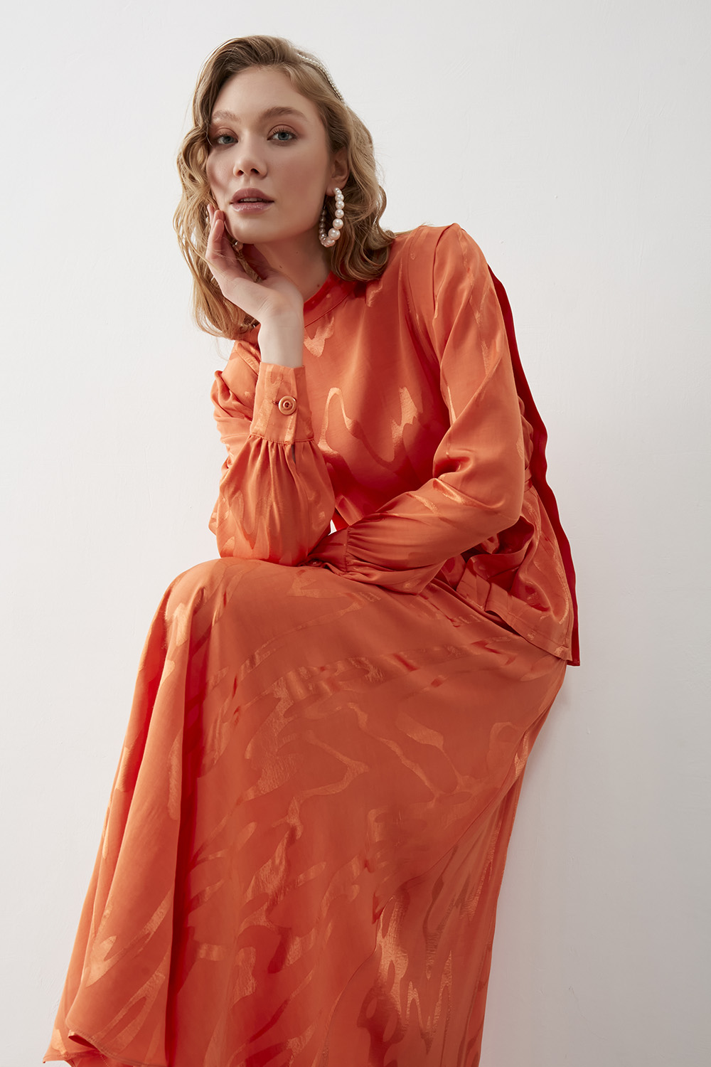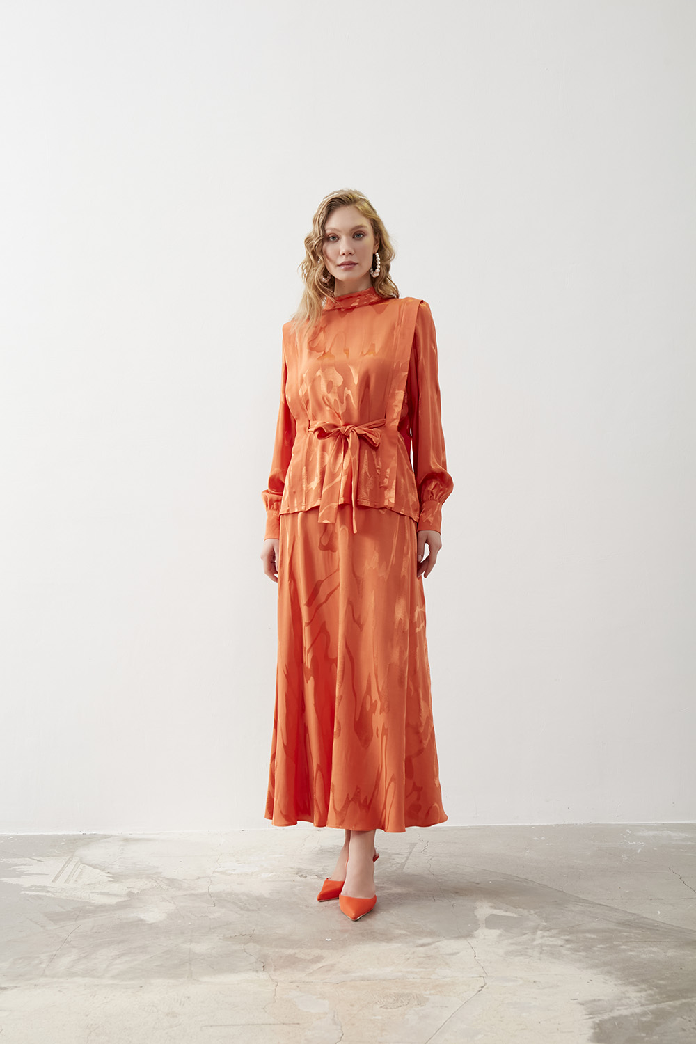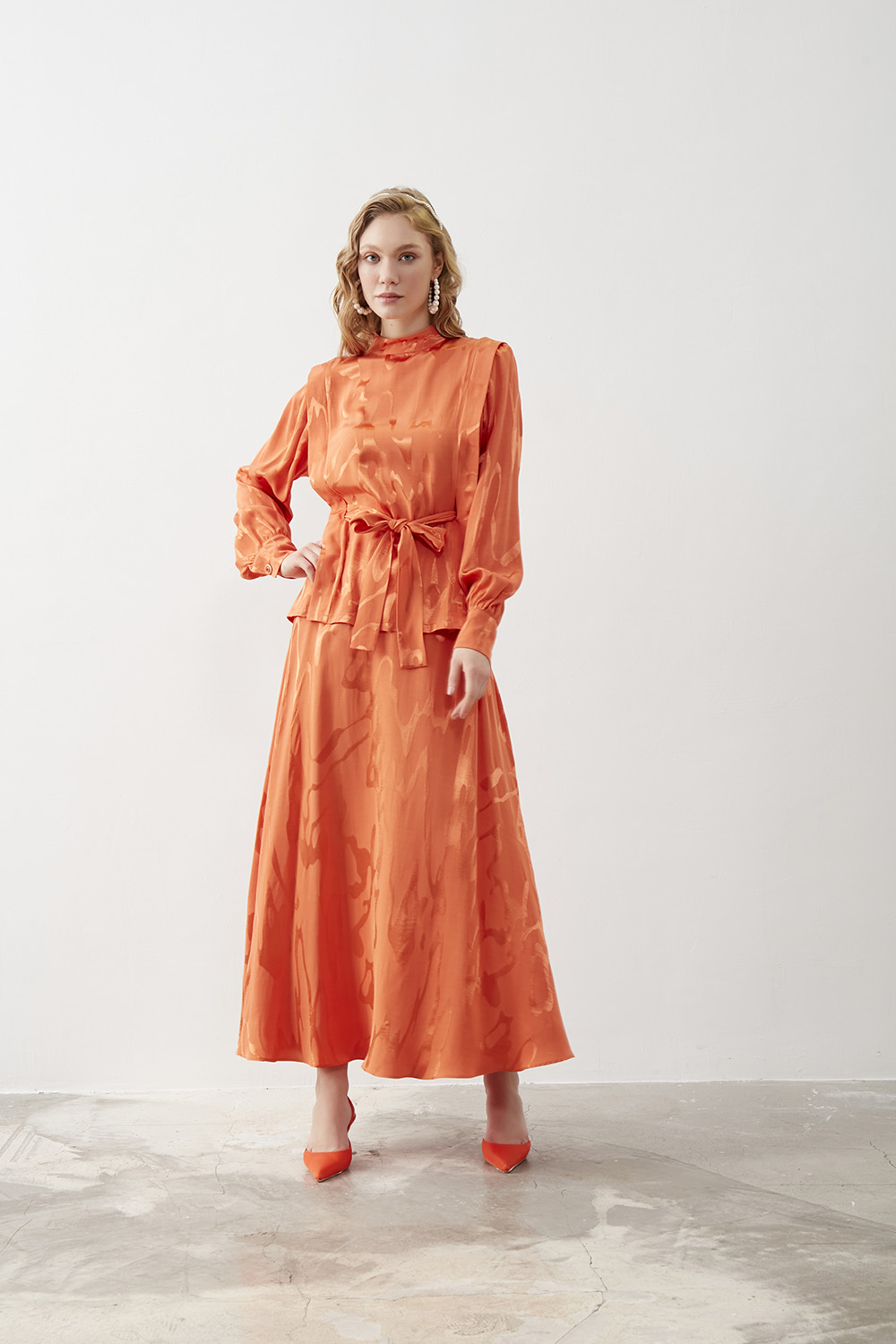 Mizalle Turuncu Jakarlı Kemerli Abiye Bluz