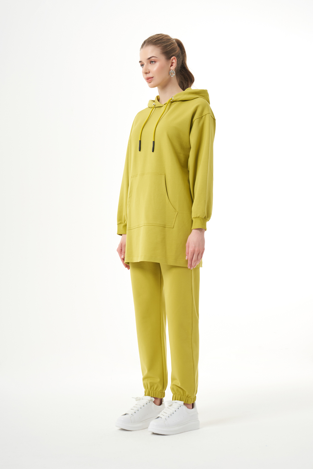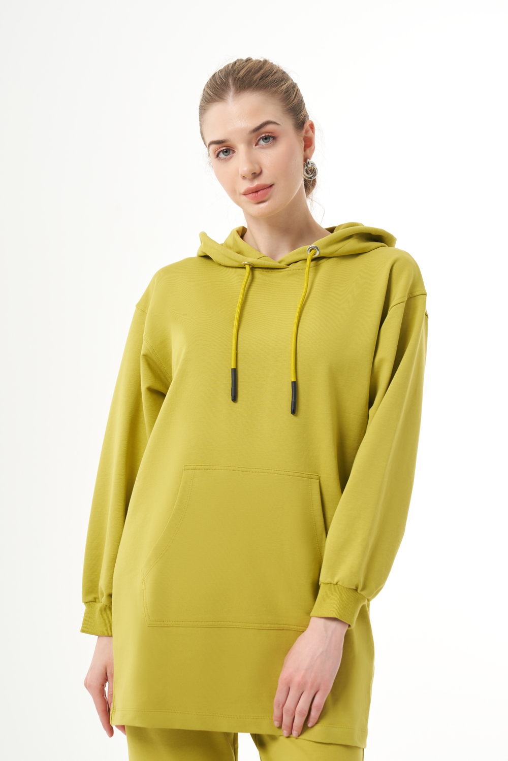 Mizalle Kapüşonlu Kanguru Cepli Yeşil Sweatshirt