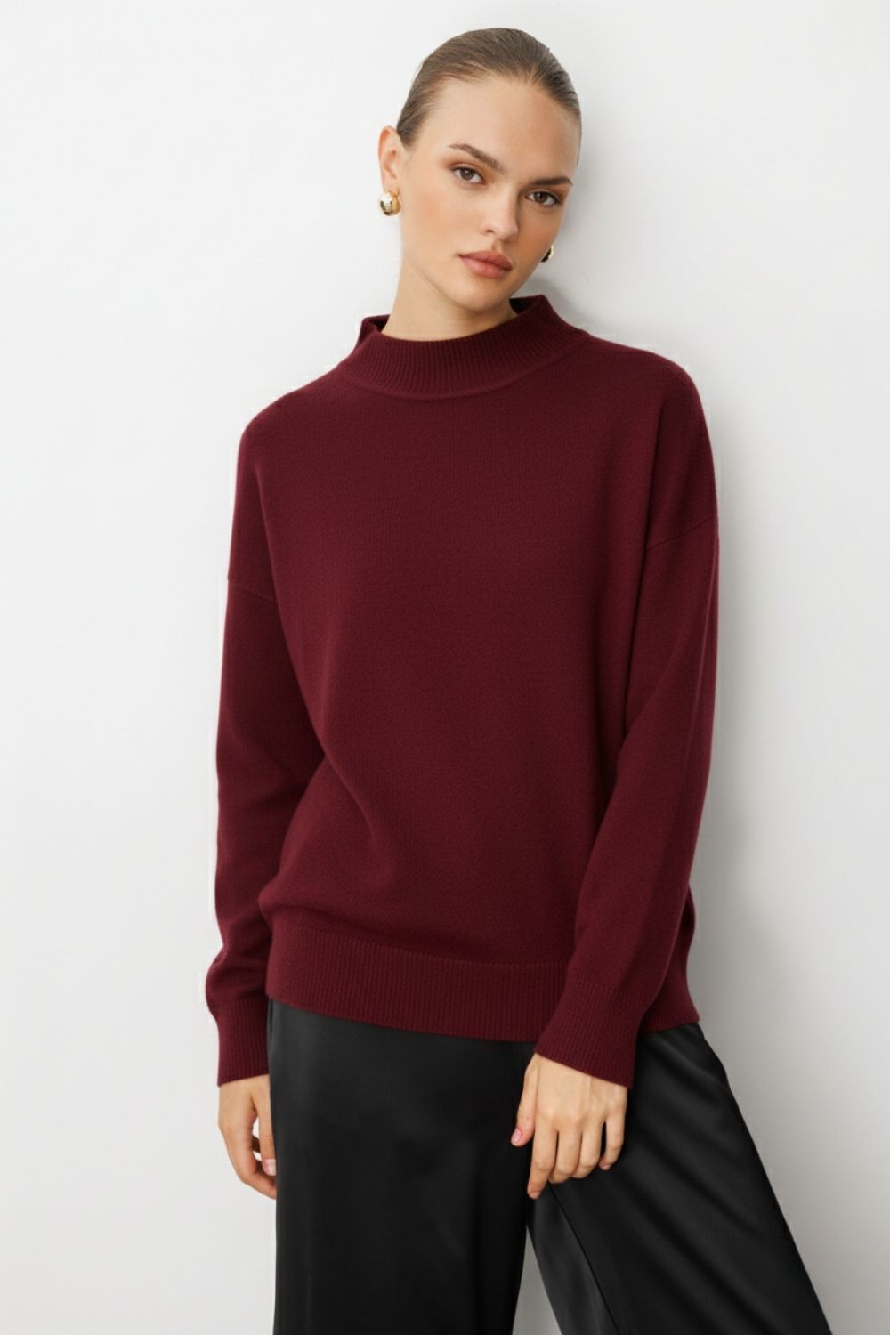 Mizalle Basic Yarım Balıkçı Bordo Triko Kazak, modern tasarımı ve kaliteli kumaş dokusuyla öne çıkan özel bir parçadır. Şık detayları sayesinde hem günlük yaşamda hem de özel davetlerde rahatlıkla tercih edilebilir. regular fit kalıbı ve uzun kol tasarımıyla konfor ve şıklığı bir araya getirir.