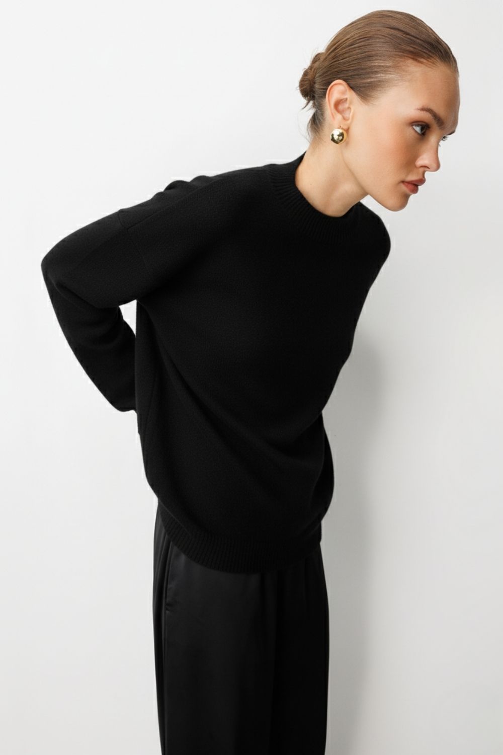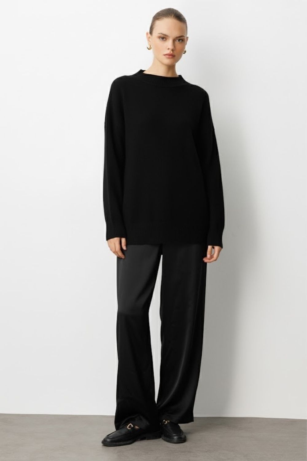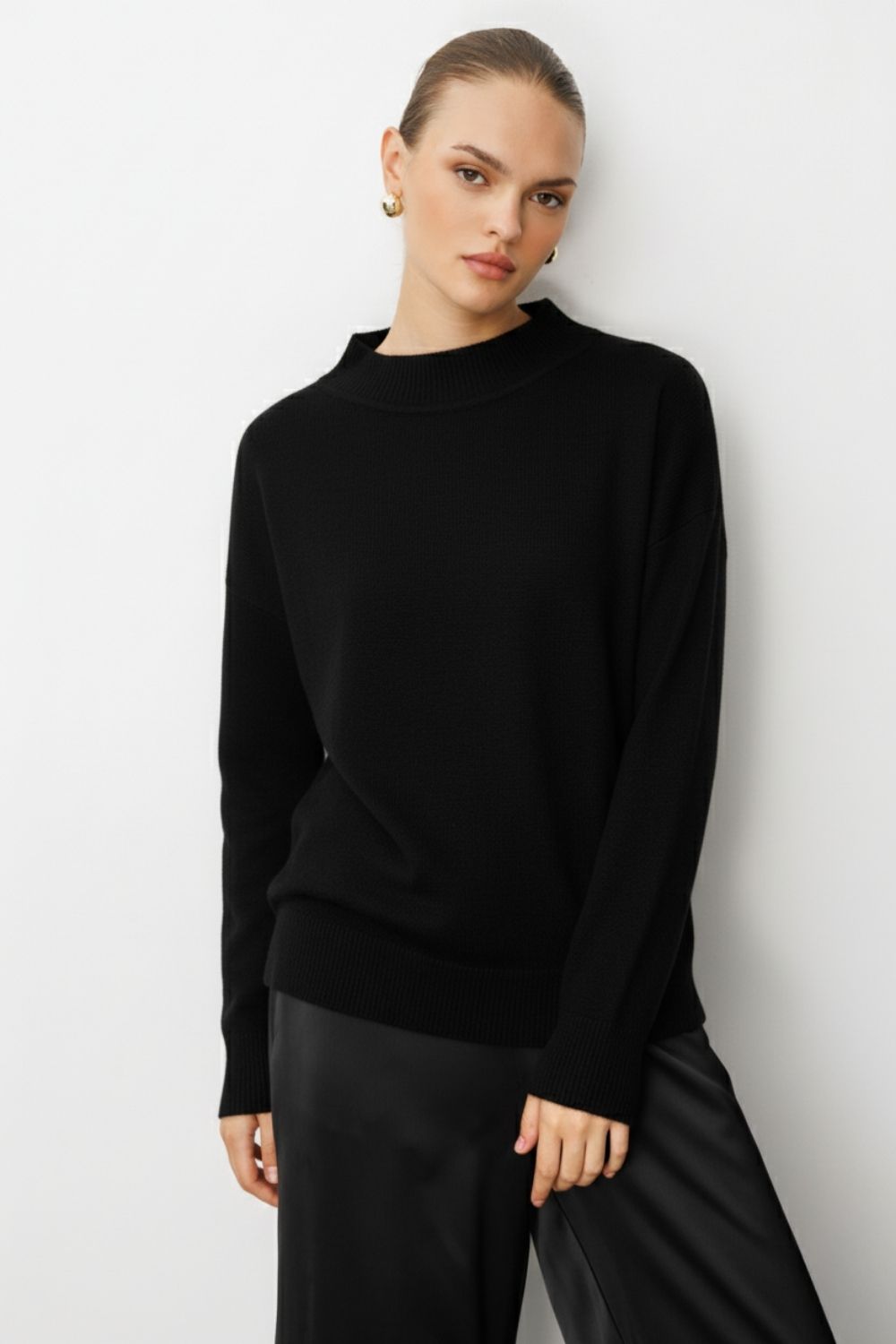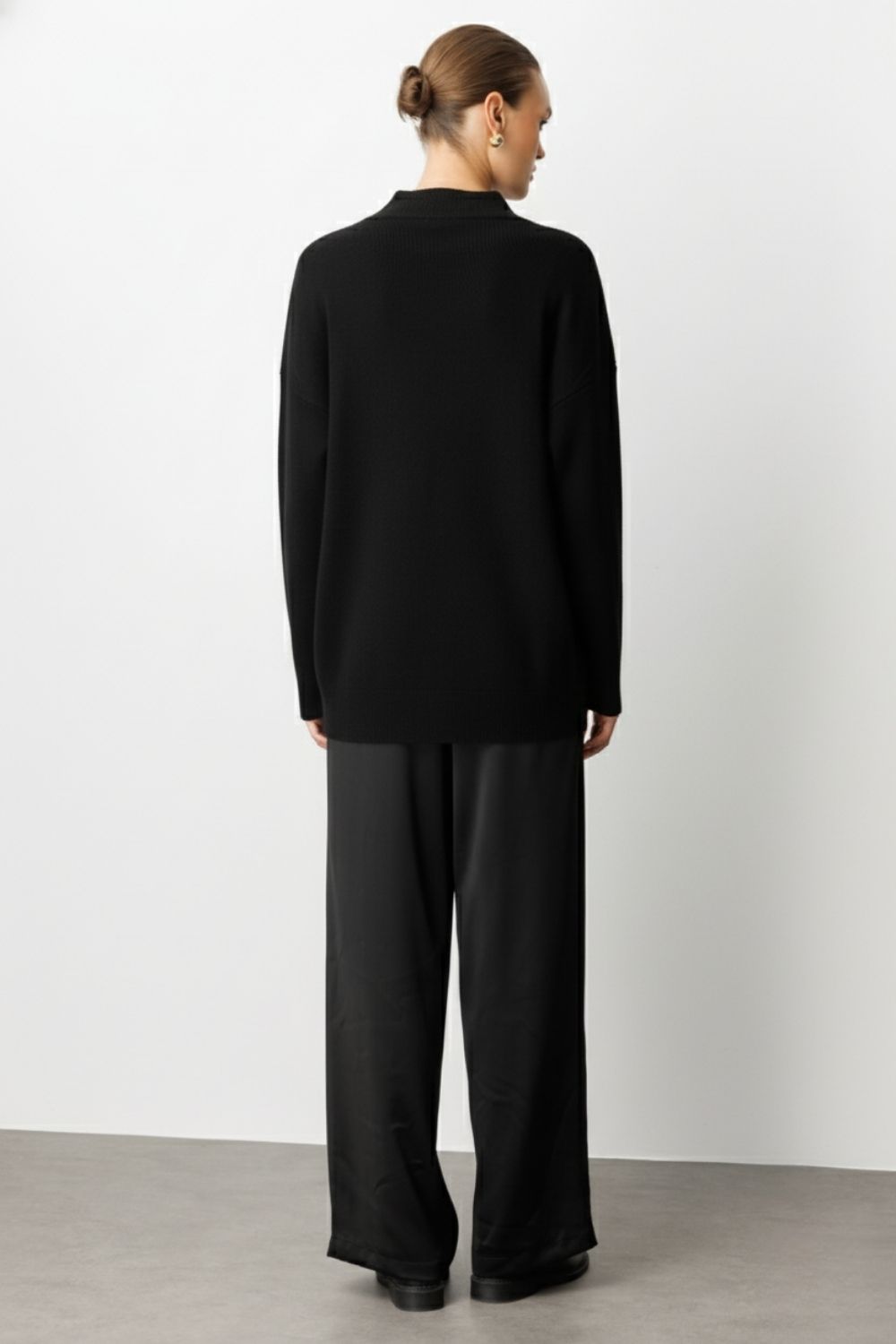 Mizalle Basic Yarım Balıkçı Siyah Triko Kazak, modern tasarımı ve kaliteli kumaş dokusuyla öne çıkan özel bir parçadır. Şık detayları sayesinde hem günlük yaşamda hem de özel davetlerde rahatlıkla tercih edilebilir. regular fit kalıbı ve uzun kol tasarımıyla konfor ve şıklığı bir araya getirir.