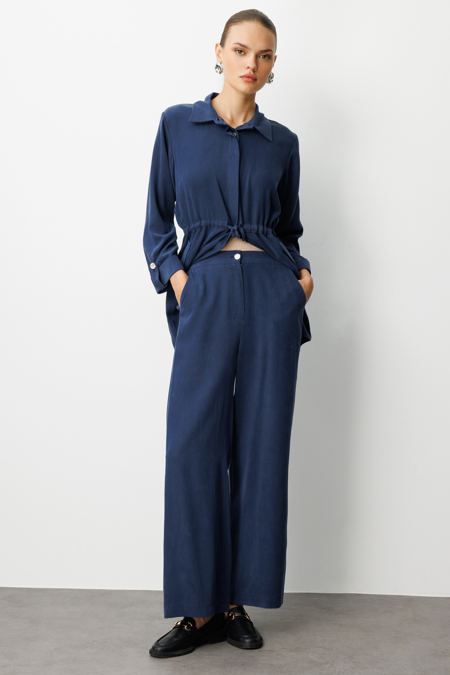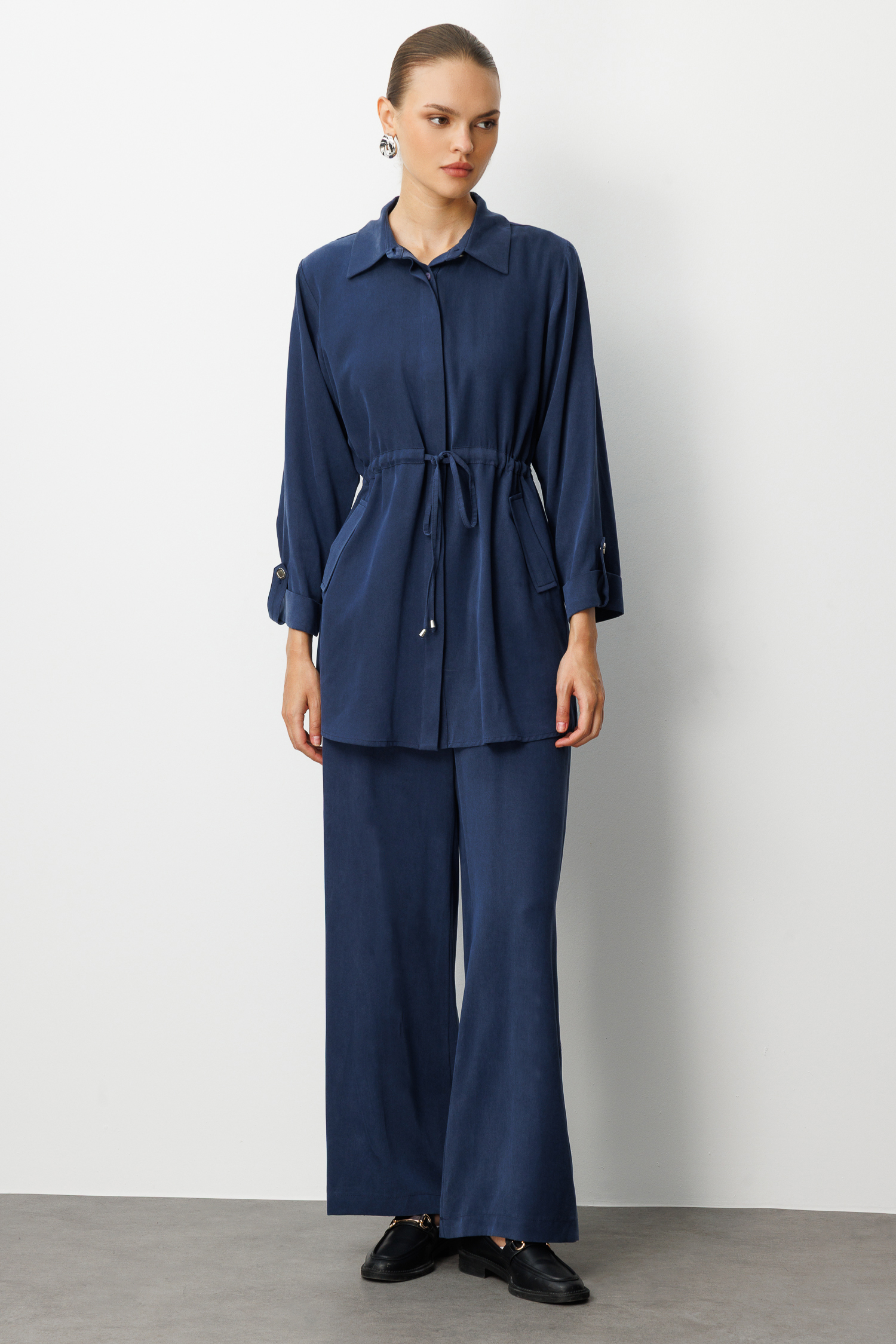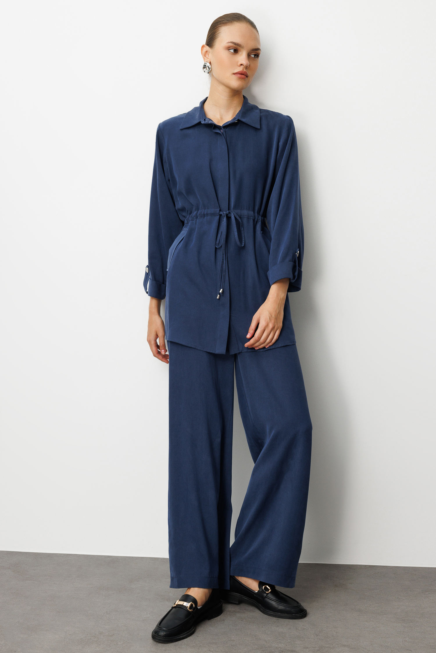 Mizalle Beli Büzgülü İndigo Mavi Cupro Tunik, modern tasarımı ve kaliteli kumaş dokusuyla öne çıkan özel bir parçadır. Şık detayları sayesinde hem günlük yaşamda hem de özel davetlerde rahatlıkla tercih edilebilir. regular fit kalıbı ve uzun kol tasarımıyla konfor ve şıklığı bir araya getirir.