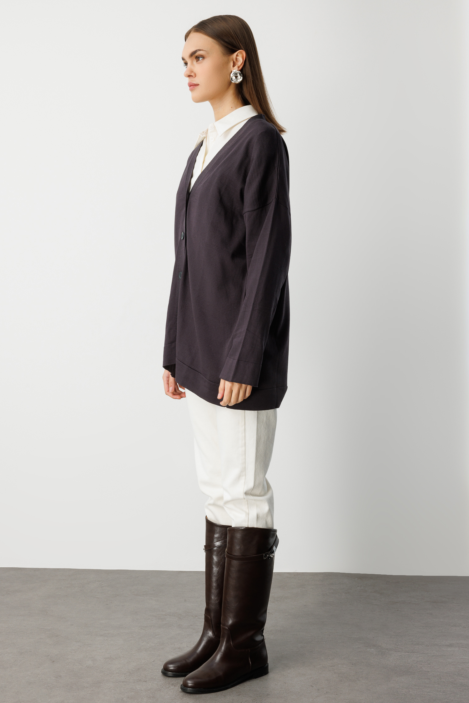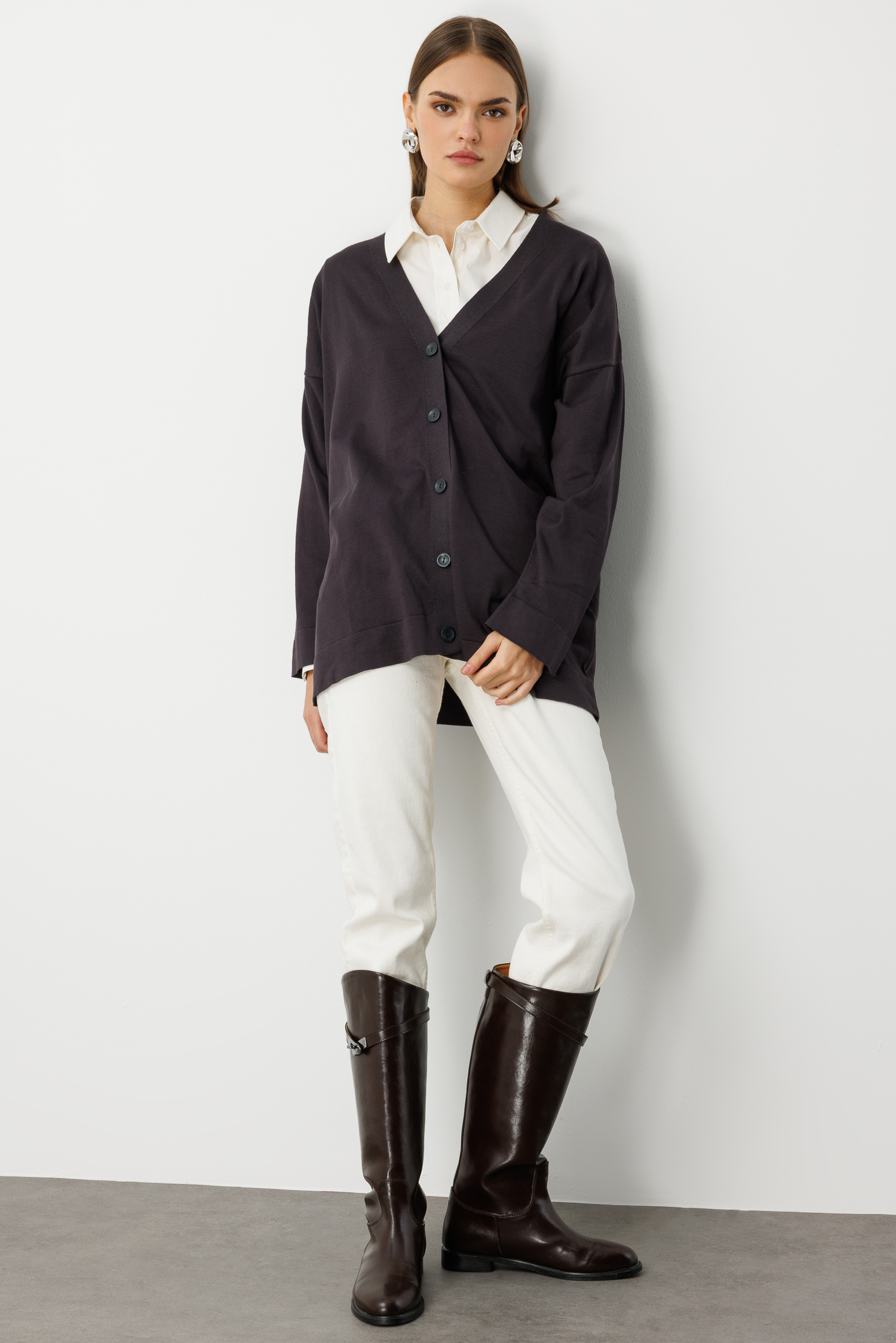 Mizalle Ekstra Oversize Düşük Kol Basic Antrasit İnce Triko Hırka