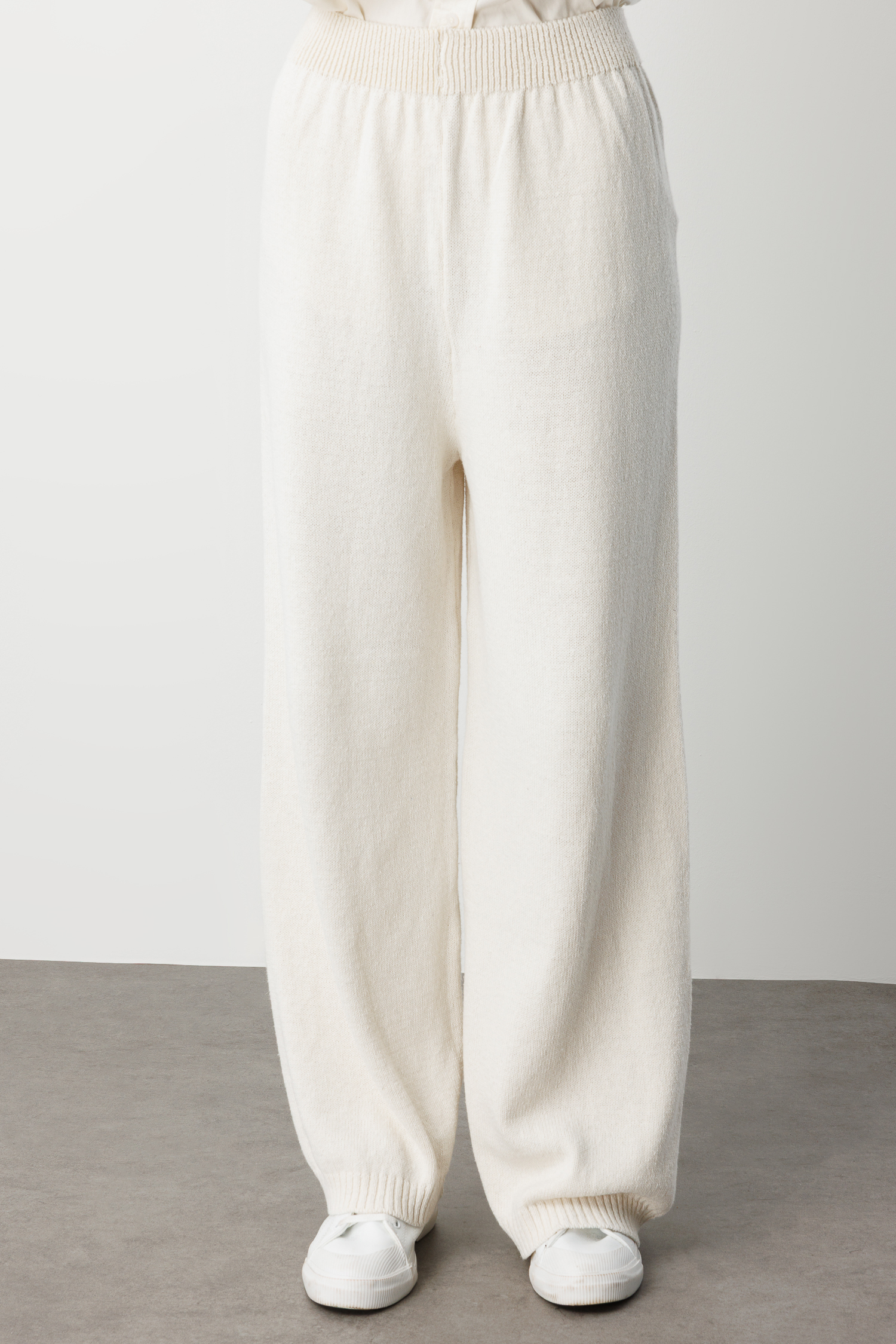 Mizalle Geniş Paça Beli Lastikli Ekru Basic Triko Jogger Pantolon, yumuşak dokulu pamuklu triko kumaşı sayesinde gün boyu hafiflik ve konfor sunan modern bir basic parçadır. Rahat beden esnekliği ve lastikli bel detayı sayesinde 36–42 arası bedenlere rahatlıkla uyum sağlar. Geniş paça kesimi ile hareket özgürlüğü sağlarken, ekru rengiyle sade, temiz ve zamansız bir görünüm oluşturur. Günlük şehir stilinden ev konforuna kadar çok yönlü bir kullanım vadeder.