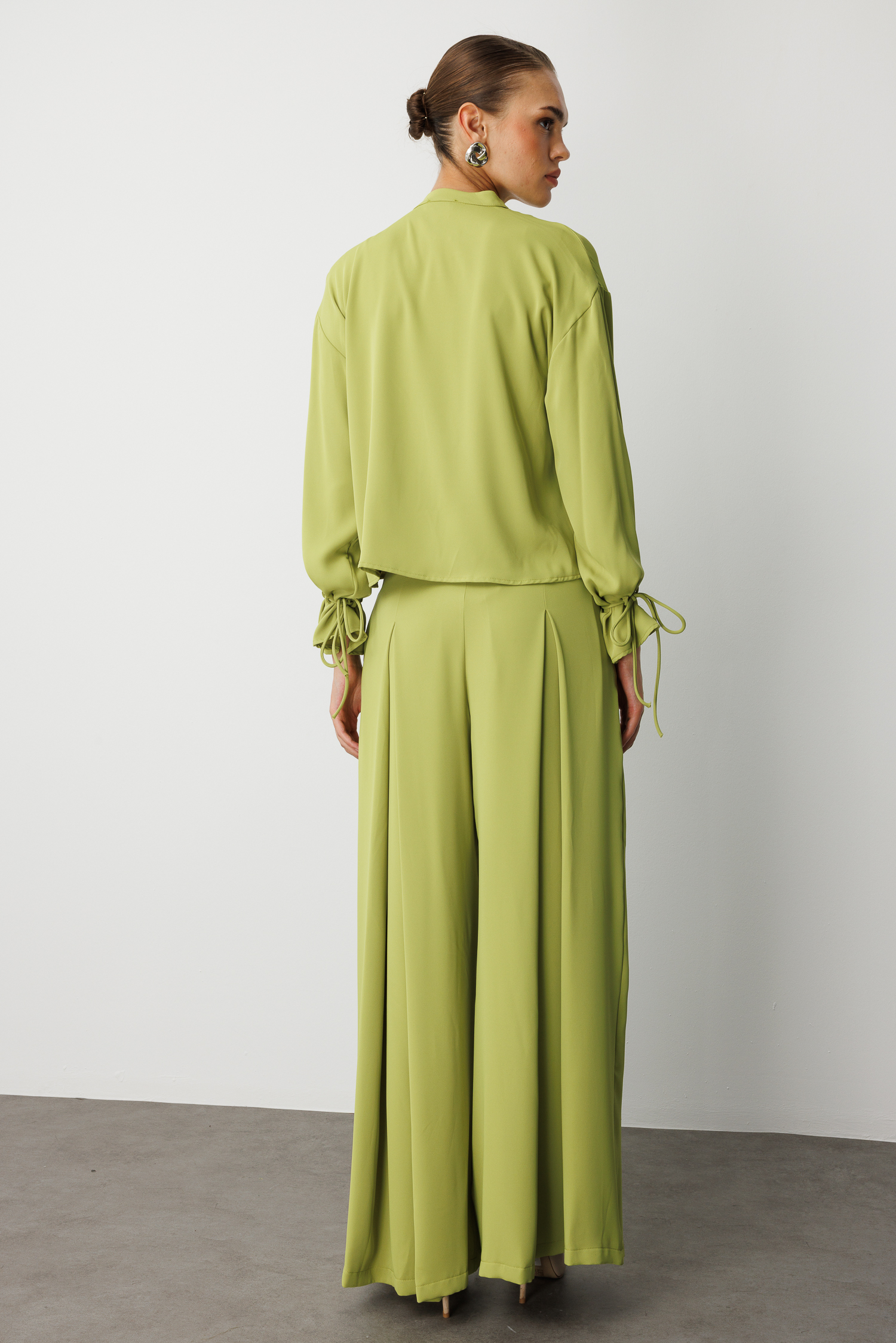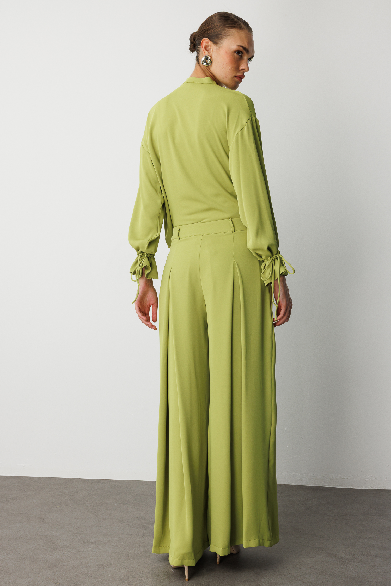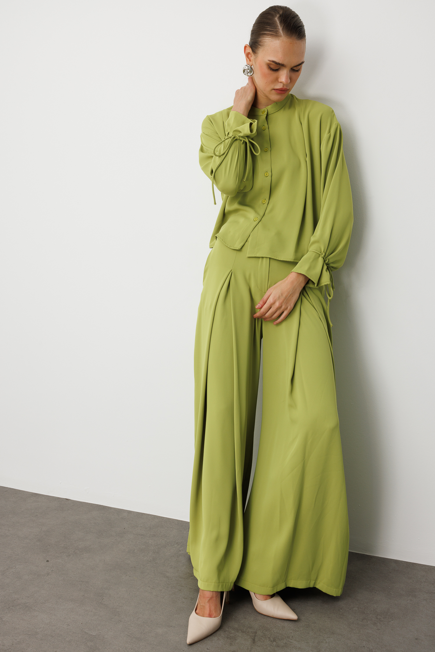 Mizalle Geniş Pileli Bol Kesim Şifon Yeşil Pantolon, hafif dokulu şifon kumaşı ve akışkan siluetiyle zarafeti konforla buluşturan modern bir tasarım sunar. Bel kısmındaki geniş pile detayları hareketli ve sofistike bir duruş yaratırken, bol kesim formu pantolona hem dökümlü bir görünüm hem de gün boyu rahatlık kazandırır. Sezonun doğal ve canlı yeşil tonuyla öne çıkan bu parça, özel davetlerden günlük şıklığa kadar geniş bir kullanım alanı sunan, stil sahibi görünümler için ideal bir tamamlayıcıdır.