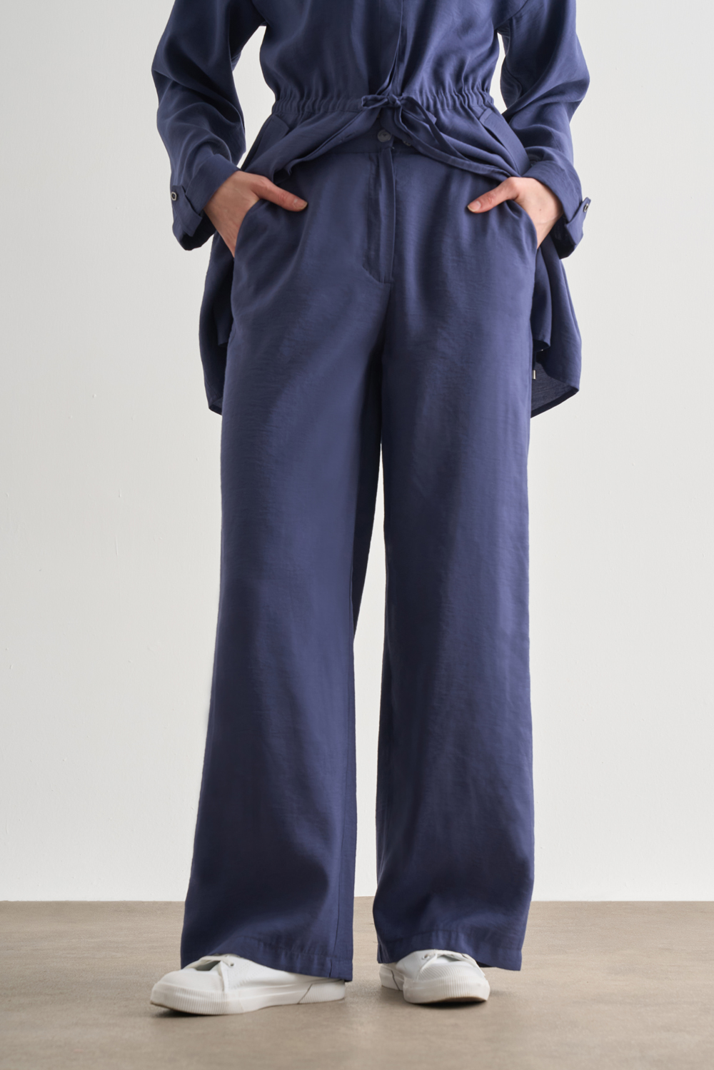 Mizalle İndigo Mavi Rahat Kesim Geniş Paçalı Modal Pantolon