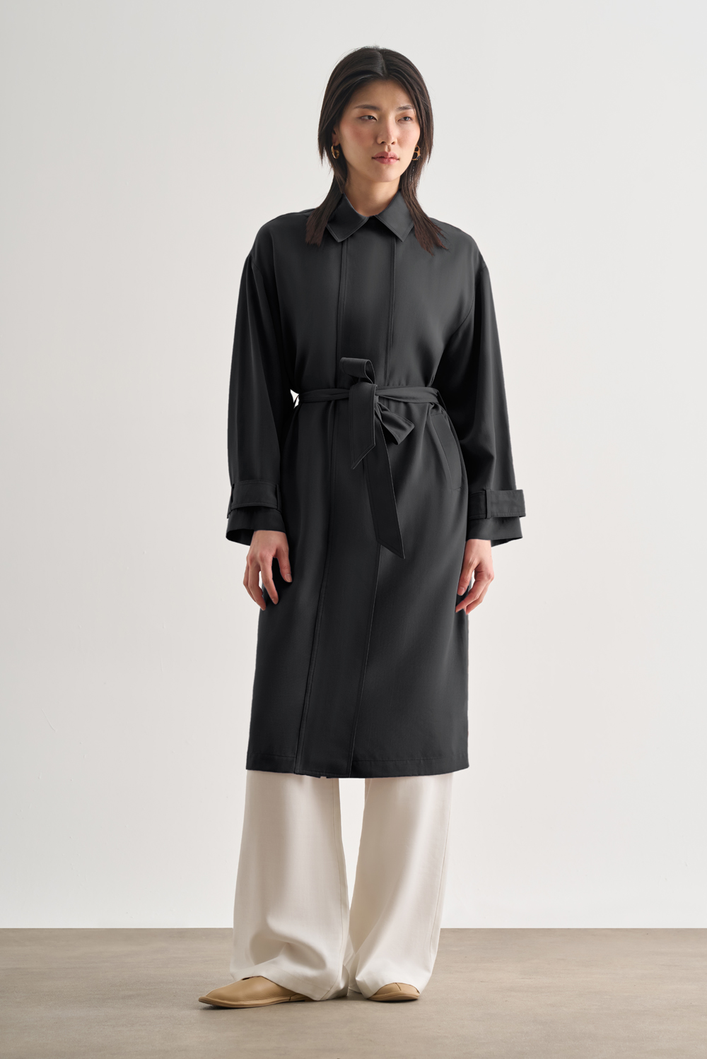 Mizalle Siyah Geniş Patlı Kuşaklı Uzun Gömlek Üst