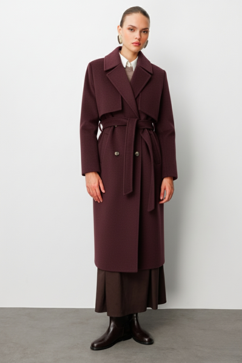 Mükemmel Döküm: Kaşe kumaşın ağır ve tok yapısı, kabana zarif ve akışkan bir döküm kazandırır; vücudunuzda daima şık ve düzgün durur.