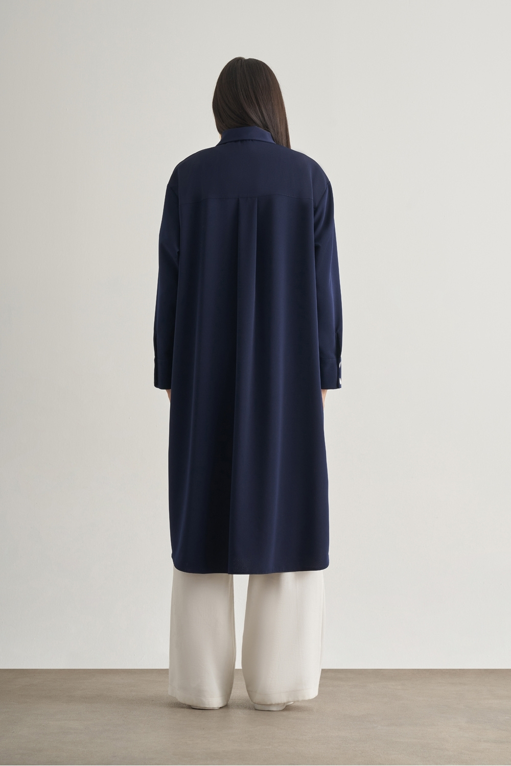 Model: Uzun tunik, çıtçıt kapama detaylı
