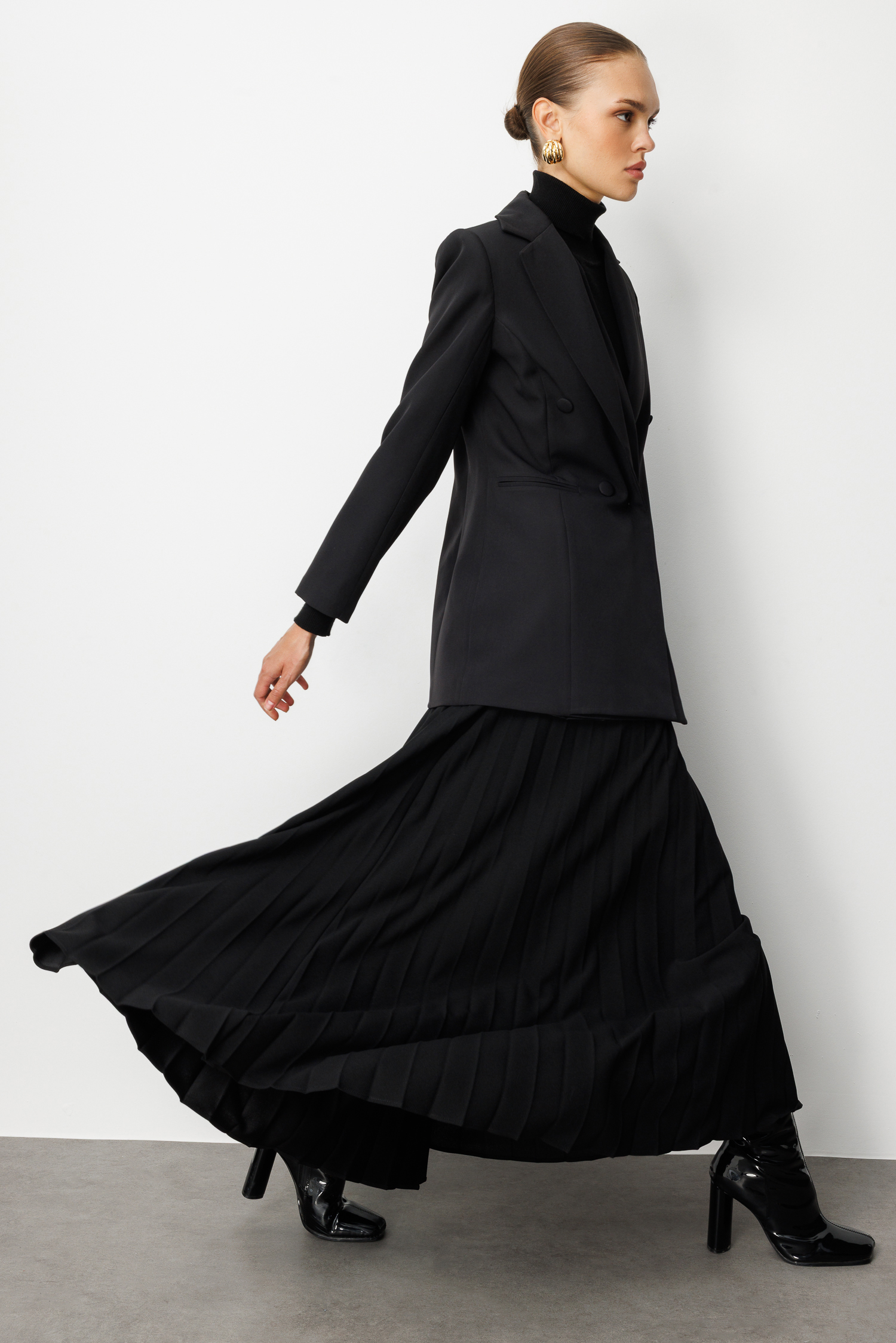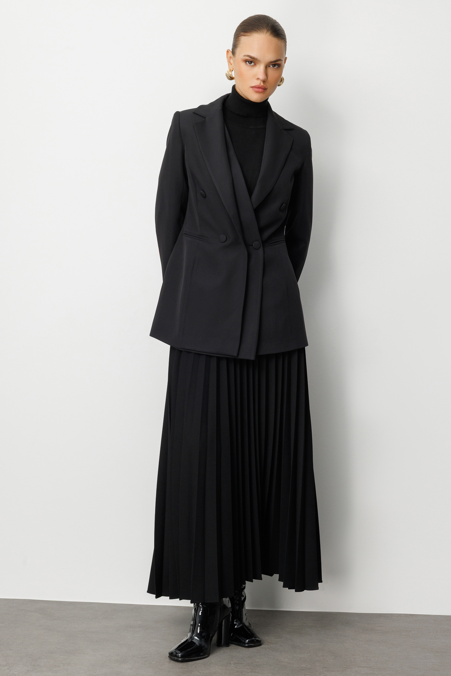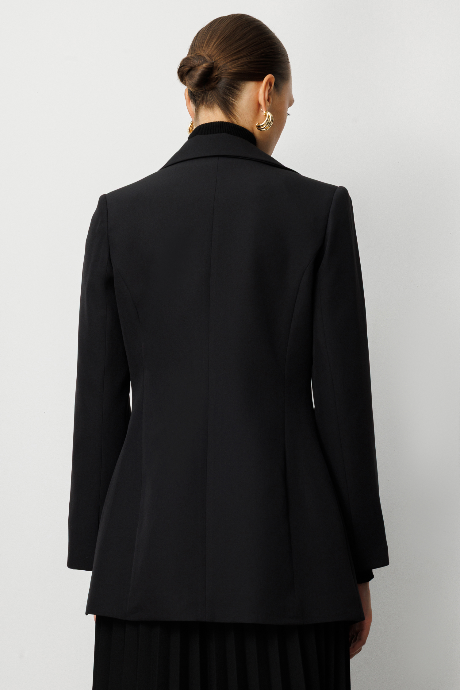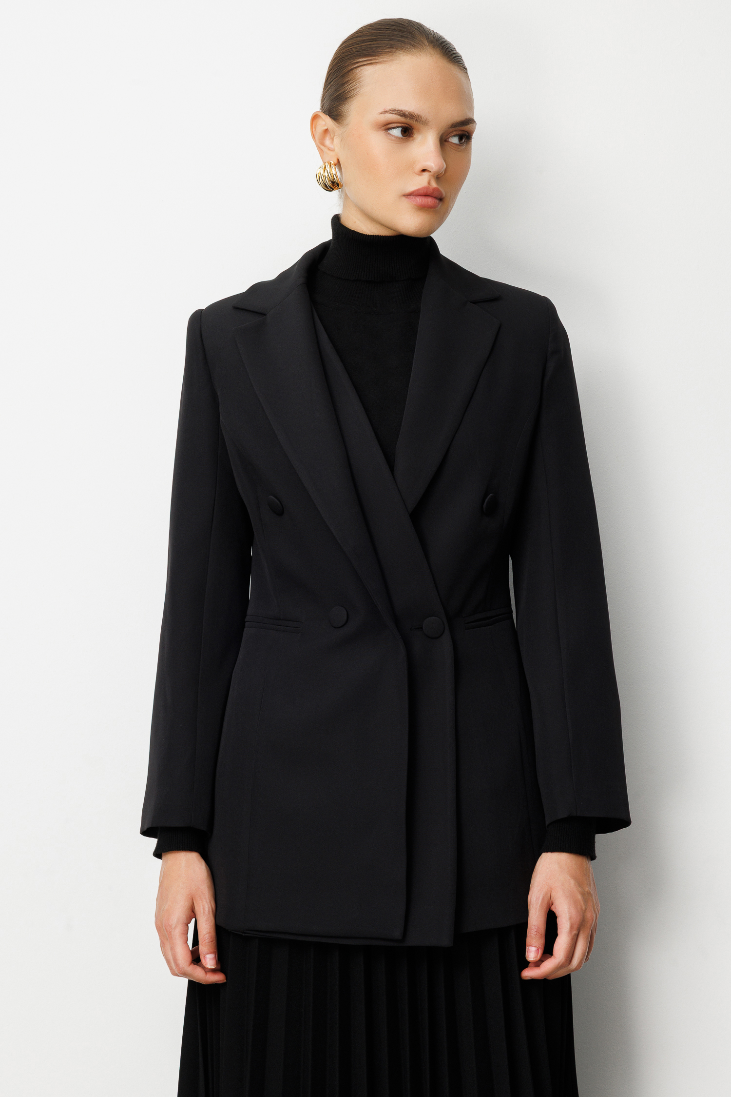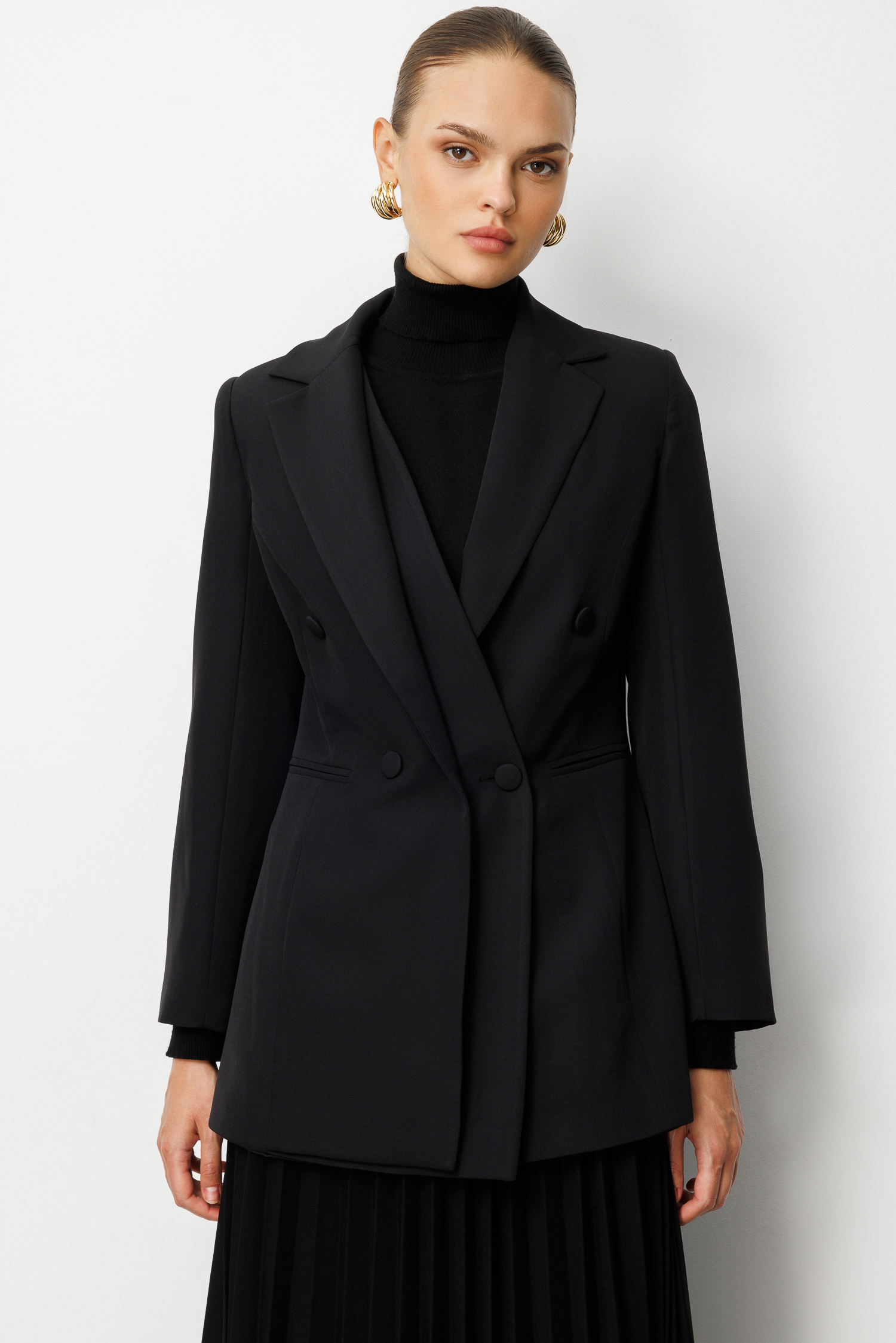 Mizalle Renk Bloklu Özel Tasarım Siyah Kruvaze Ceket