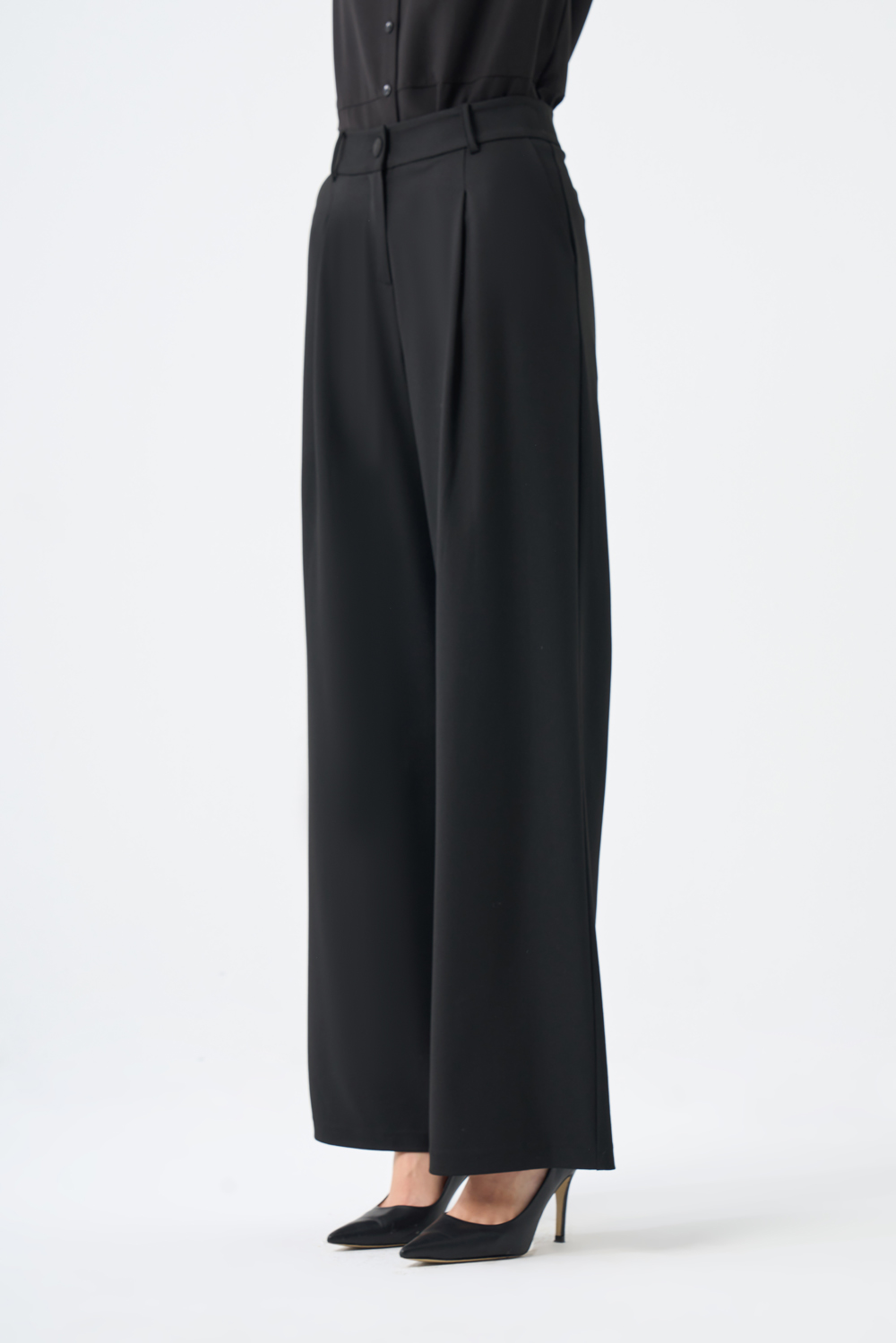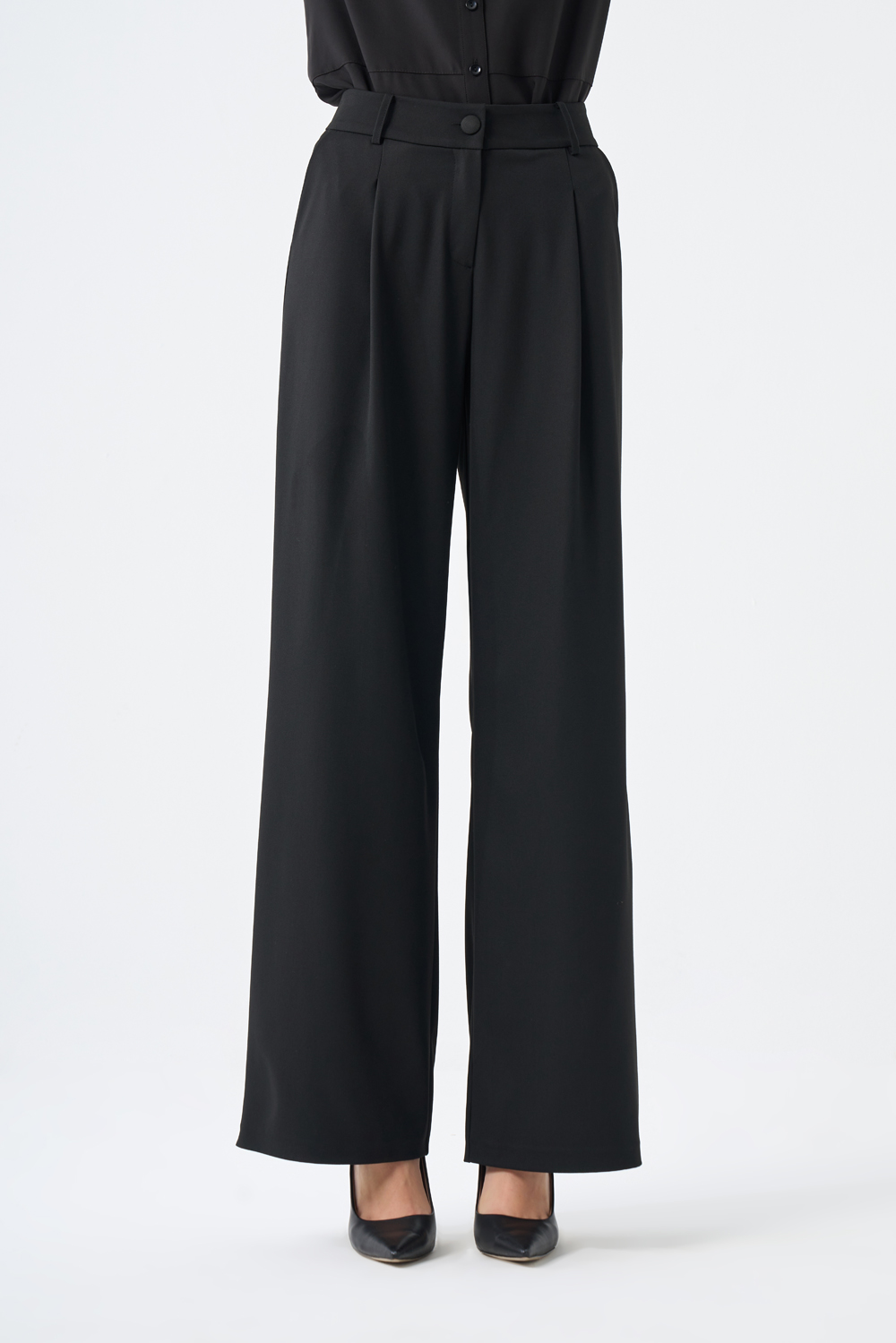 Mizalle Tek Pileli Geniş Kesim Klasik Siyah Pantolon